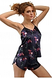 Kobiecy komplet z kolekcji Flowers. - koszulka z kwiecistej satyny - dekolt zdobi piękna koronka - ramiączka regulowane, nieodpinane - koronkowe szorty - idealna propozycja na prezent Skład: 100% ...