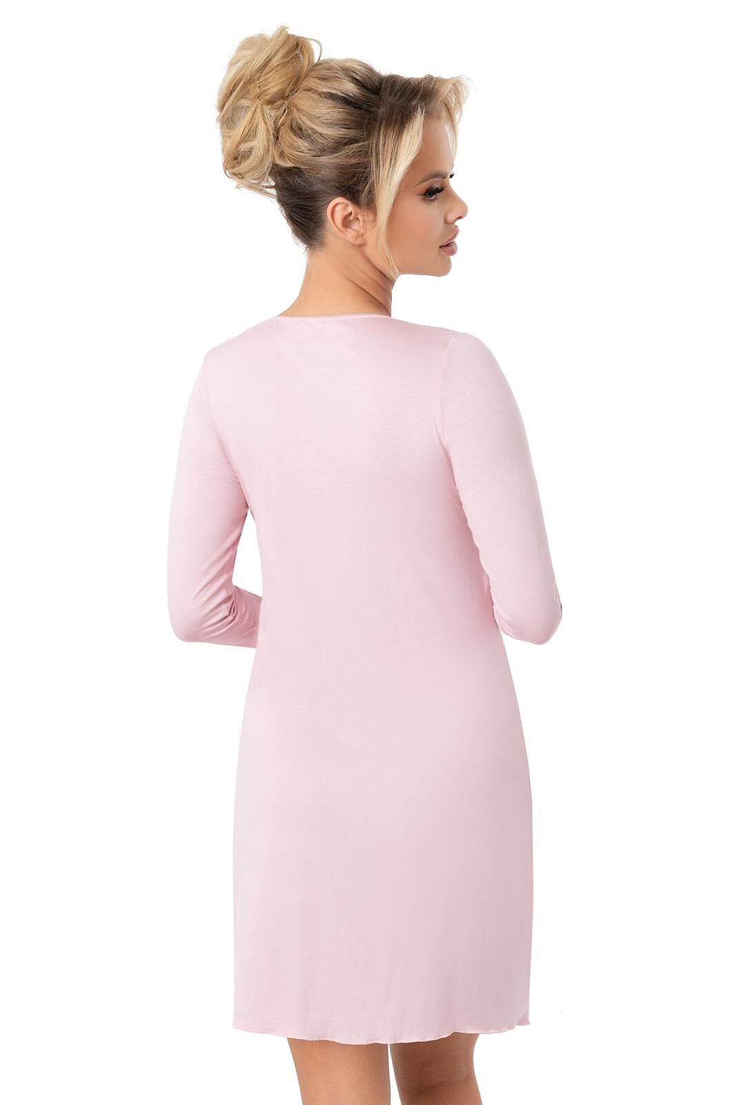 Efektowna koszulka damska - z miłej dla ciała wiskozy - dekolt i linię pod biustem zdobi ażurowa koronka o kwiatowym motywie - rękaw o długości 3/4 - długość przed kolano - pakowana w pudełko Skład: 90% wiskoza, 5% elastan, 5% poliamid