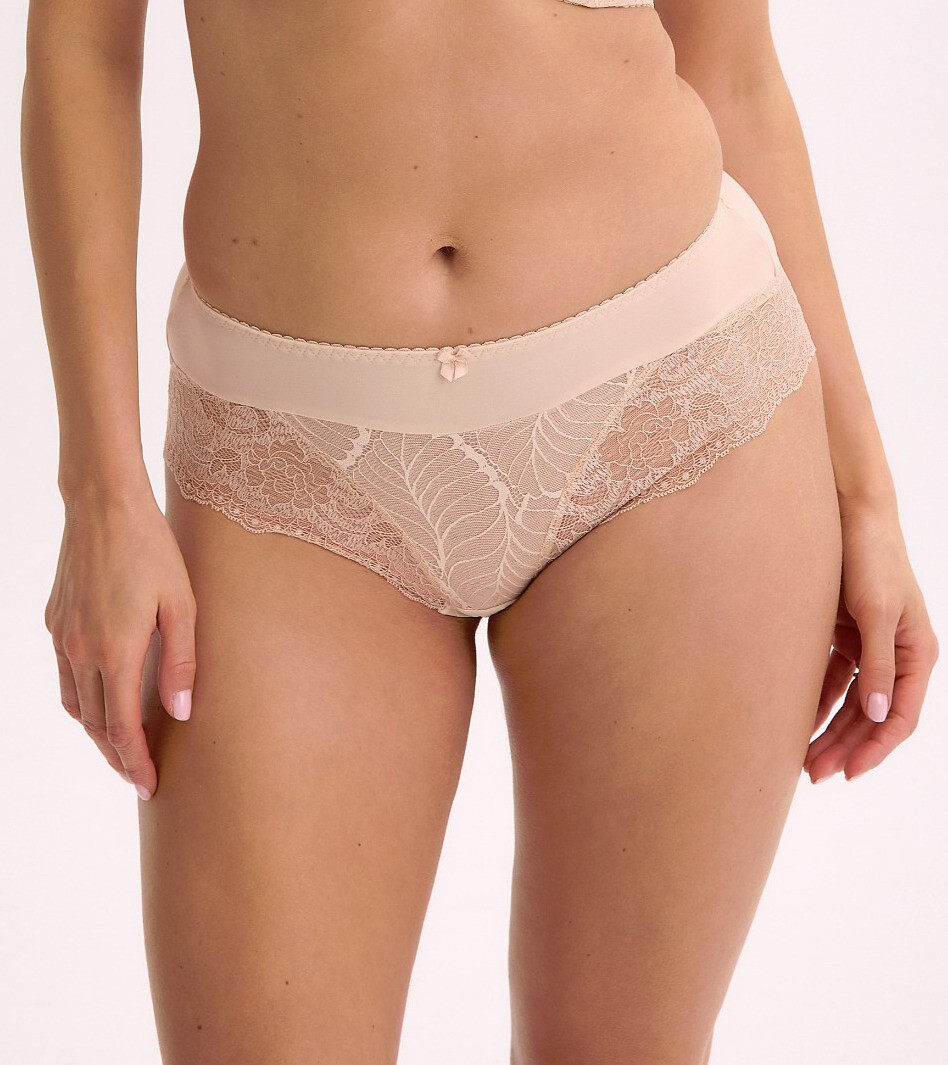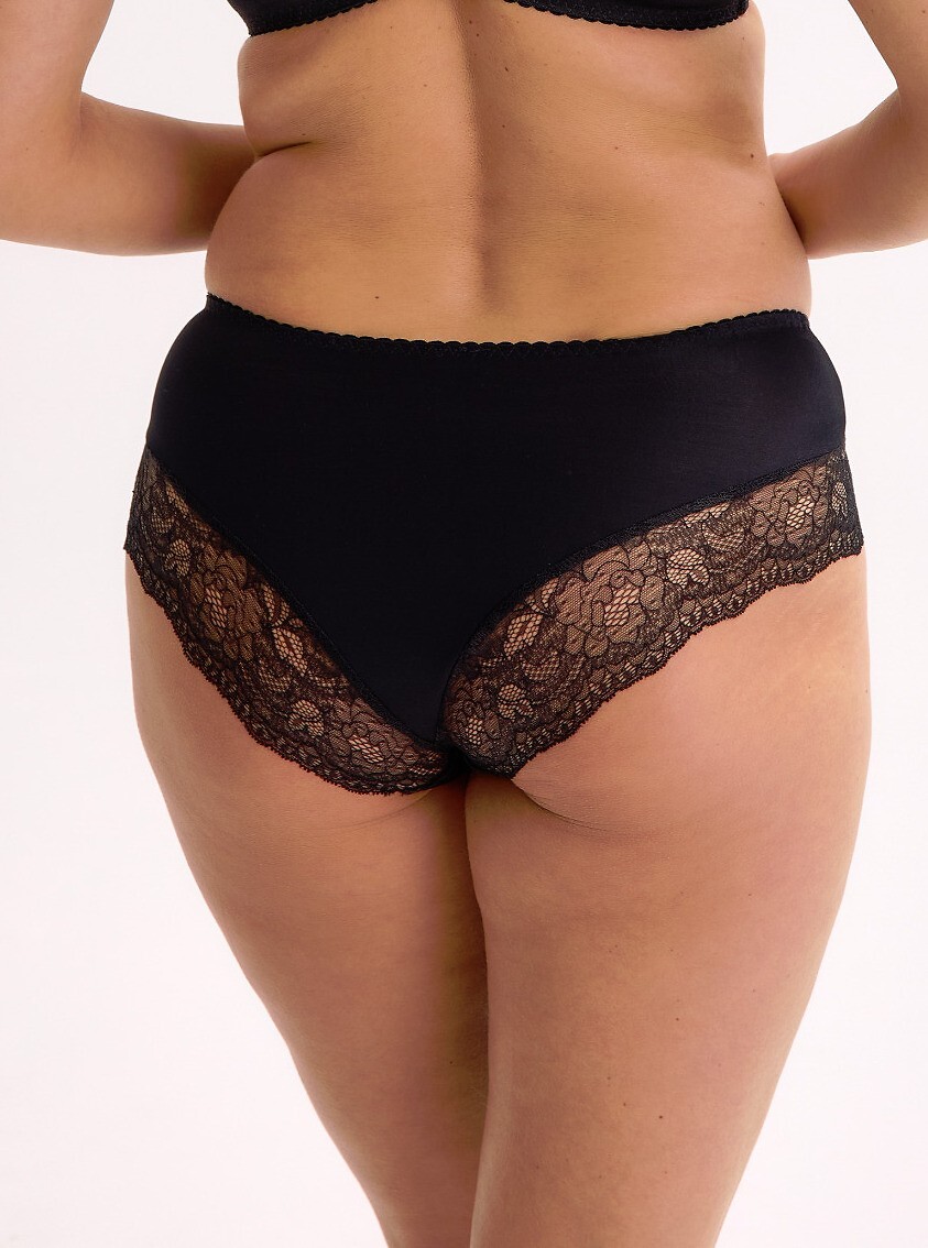 Klasyczne figi damskie - przód z delikatnej koronki - tył z gładkiej mikrofibry - nogawki wykończone ażurową koronką