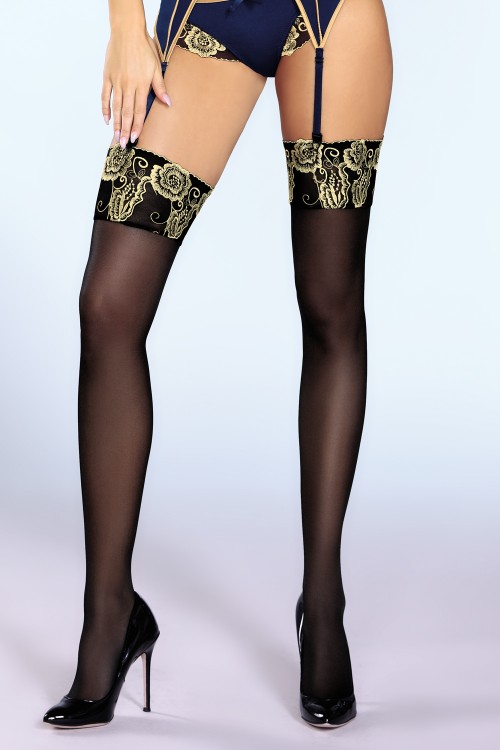 Klasyczne pończochy Livia Corsetti Scarlett LC 90295 z oryginalnym zdobieniem u góry.