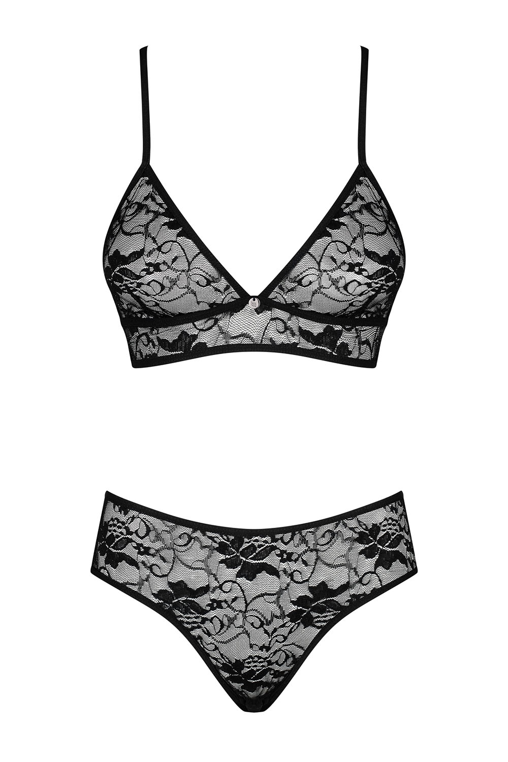 Fantazjujesz o wyjątkowej bieliźnie? Piękna, głęboka czerń i prześwitujący materiał sprawią, że poczujesz się naprawdę nieziemsko. A my właśnie mamy coś, co odpowiada temu opisowi: pikantny komplet z kolekcji Kokietta. Oczaruje Cię od pierwszego spojrzenia w lustro! Zobacz tylko jak delikatnie podkreśli plecy i powabnie uwydatni kobiece kształty. Zaś kwiatowy wzór i głęboka czerń zachęcą nie tylko Ciebie, by wypróbować go w sypialni!