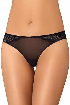 Kobiece stringi. - wykonane z wysokiej jakości siateczki - z przodu wstawki z koronki - w tyle delikatna łezka - bawełniany klinek Skład: 94% poliester, 6% elastan.